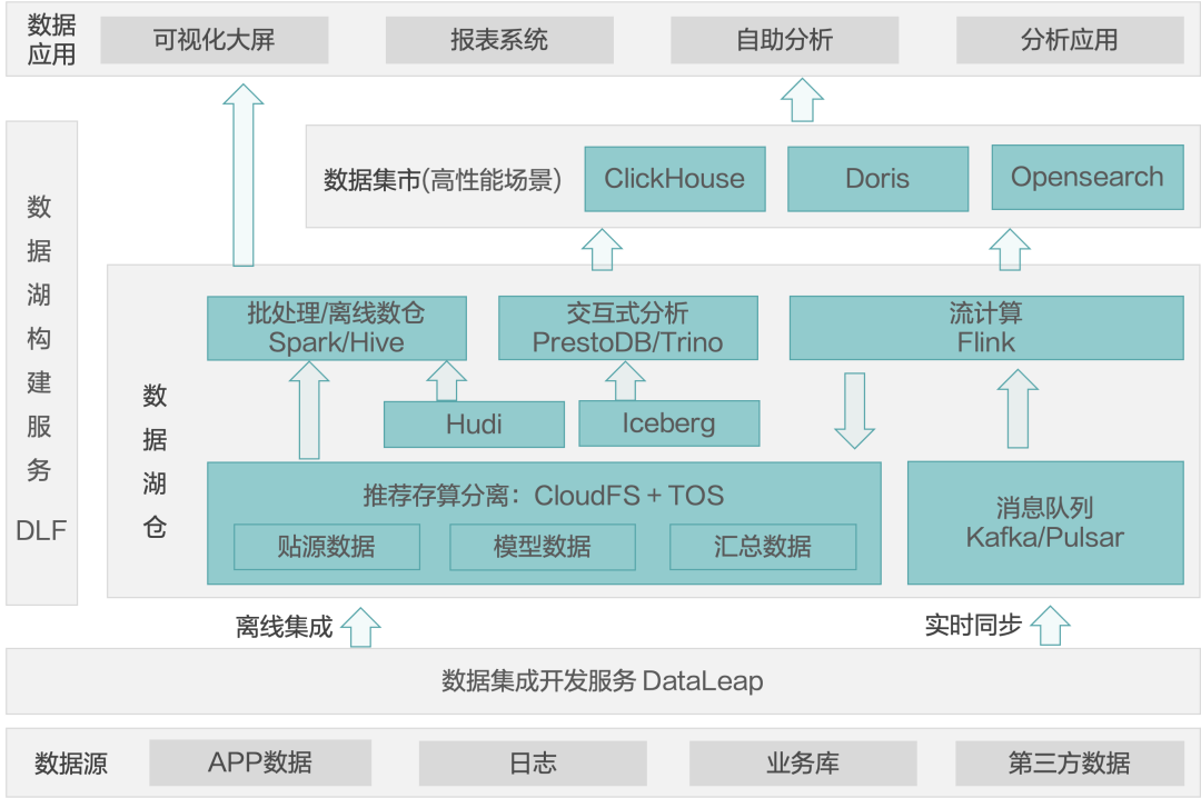 整体数据链路复杂:即使是开发一个小的 APP,要搭建整个数据链路也很复杂,比如数据回流需要写数据库;日志要回流,要基于回流数据做指标计算,回流数据还需要转储以及 CDC;基于转储数据还要做 ETL 分析。
