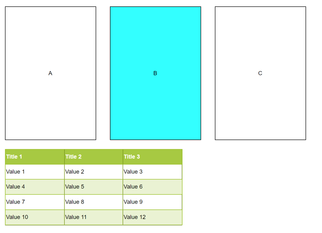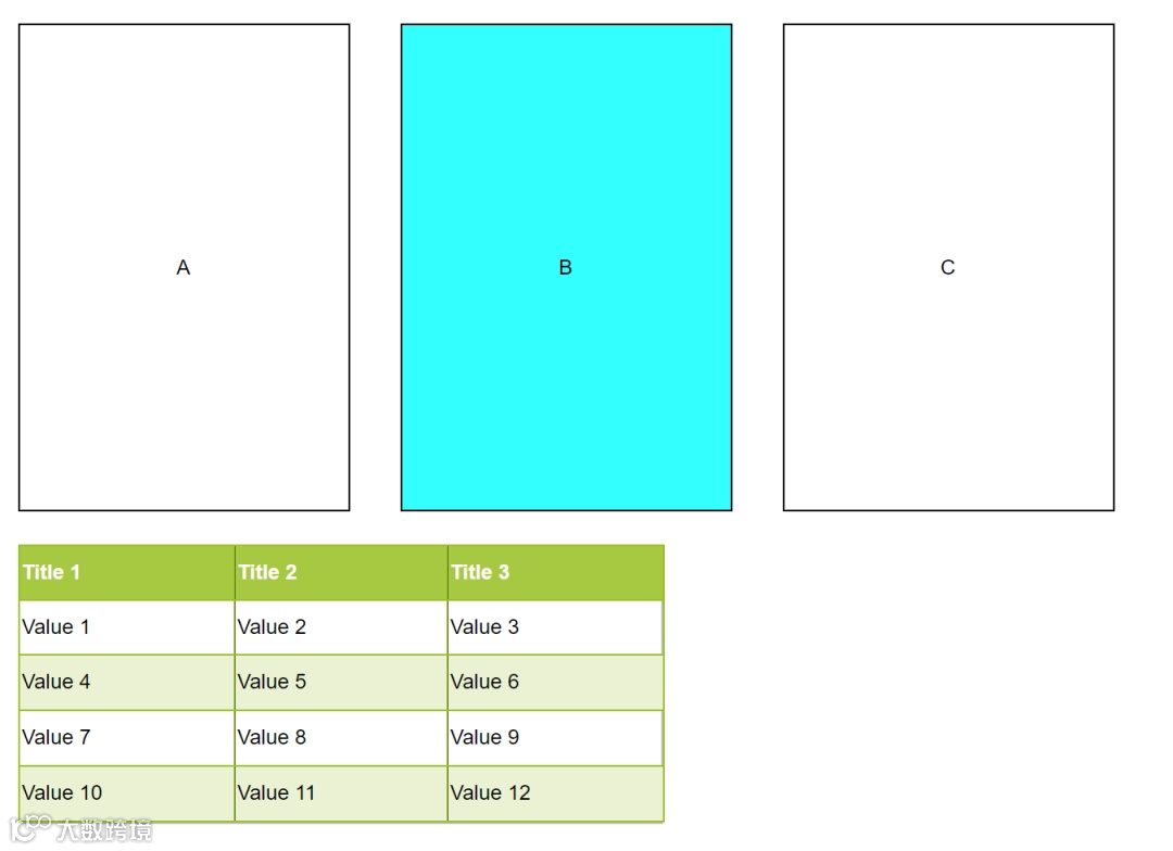 居中对齐是对于卡片和列宽在scroll距离允许情况下的理想对齐方式,贴边对齐是针对卡片在起始和结束位置scroll不足以满足居中对齐要求时候的对齐方式,除此之外还有一种是卡片的宽度远大于列宽,并且不是起始或者结束位置的时候所采取的对齐方式,如下如卡片B因为无法滚动,卡片A的宽度又占据了底部第二列的一部分,所以此时卡片B只能高亮和底部的列进行对齐。