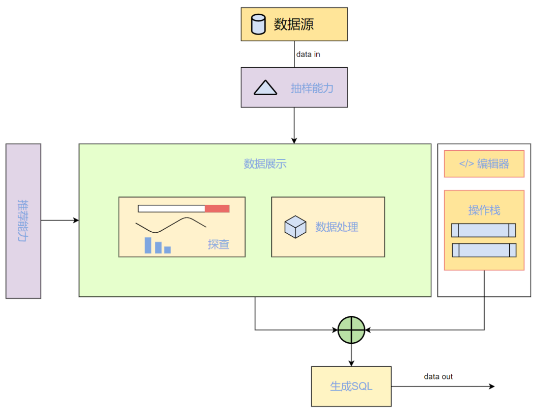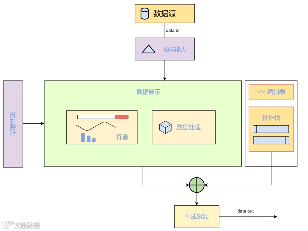 生成SQL:将可视化的交互式操作转换成可执行的SQL。