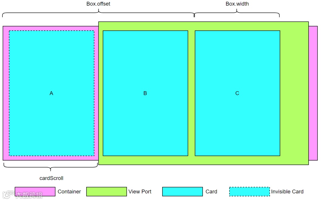 // 计算卡片中点坐标 index是卡片序号,adsorbSider表示是否吸边getCardCenter(index: number, adsorbSider?: boolean) {...// 获取卡片信息const cardBox: IBaseBox = this.cardList[index];// 获取列信息const colBox: IBaseBox = this.colList[index];const clientWidth = getClientWidth();if(adsorbSider) {// 吸边处理if(cardBox.offset < this.cardScroll) {return cardBox.offset;}if(cardBox.offset + cardBox.width - this.cardScroll > clientWidth) {return cardBox.offset + cardBox.width - clientWidth;}return this.cardScroll;}return getTargetPosition(colBox, this.tableScroll, cardBox);}// 获取滚动目标位置// originBox: 滚动起始对象// originScroll: 滚动起始左侧scroll// targetBox: 滚动结束对象const getTargetPosition = (originBox: IBaseBox, originScroll: number, targetBox: IBaseBox) => {const clientWidth = getClientWidth();if(!originBox || !targetBox) return 0;let offsetLeftSider = Math.max(originBox?.offset - originScroll, 0);if(offsetLeftSider + targetBox.width >= clientWidth) {if(targetBox.offset + targetBox.width > clientWidth) {// 此处容易出现吸边return targetBox.offset + targetBox.width - clientWidth;} else {return 0;}}const scroll = targetBox?.offset - offsetLeftSider + (targetBox.width - originBox.width) / 2;return Math.max(Math.min(targetBox.offset, scroll),0);}