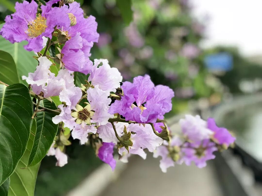 菟丝子、鸡蛋花、紫荆、紫薇开得正好