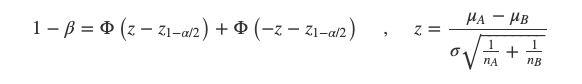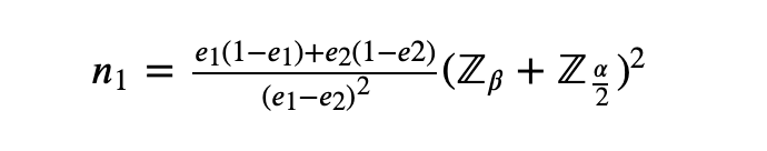 alpha 默认5%,其中norm.ppf(1 - α / 2) = 1.96,norm.ppf(β)为映射值。