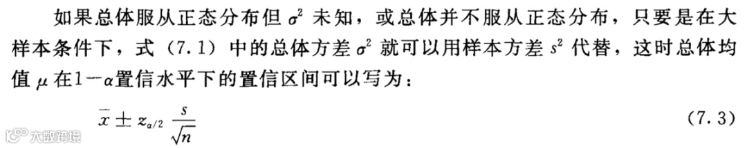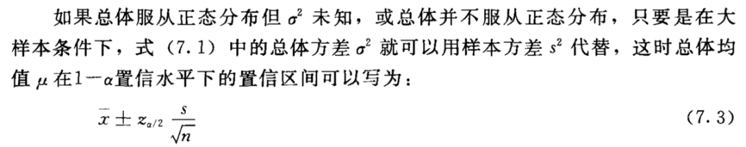 大样本下,样本均值的置信区间: