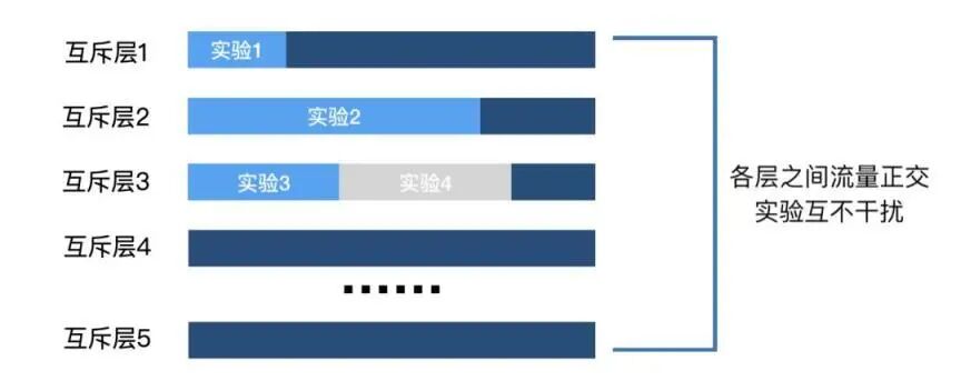 各互斥层之间的流量是正交的,你可以简单理解为:在互斥层选择正确的前提下,流量经过科学的分配,可保证各实验的结果不会受到其他互斥层的干扰。