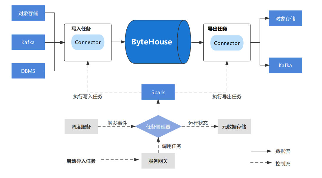 ByteHouse包括一个数据导入导出(Data Express)模块,负责数据的导入导出工作。