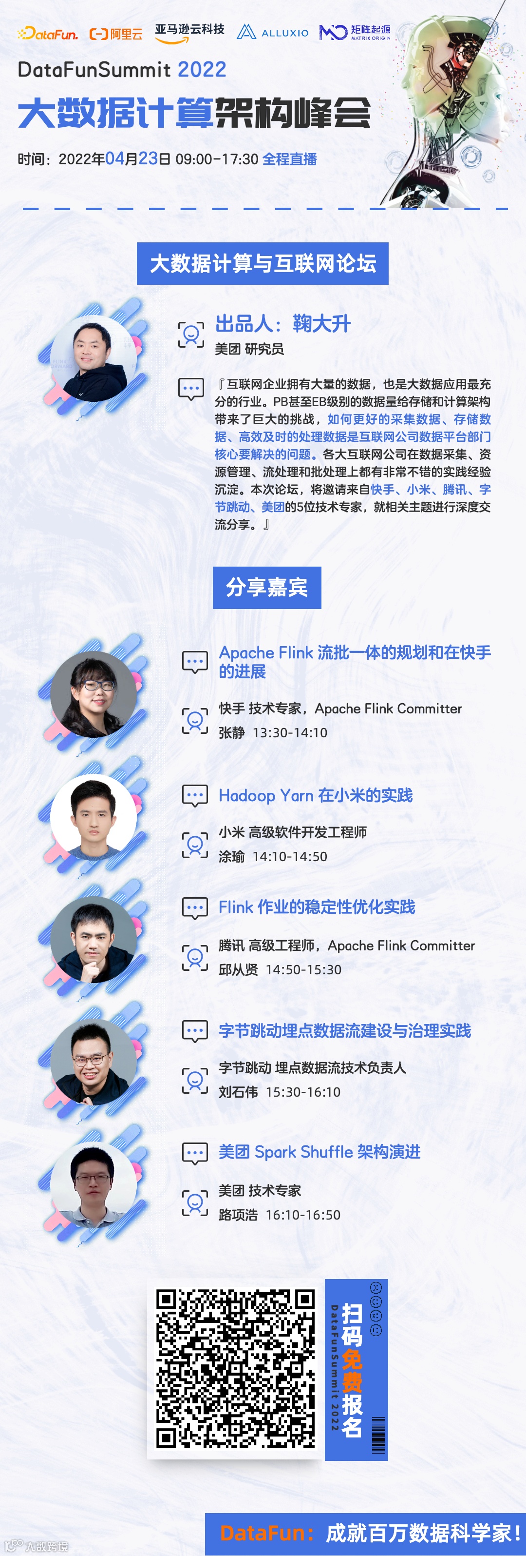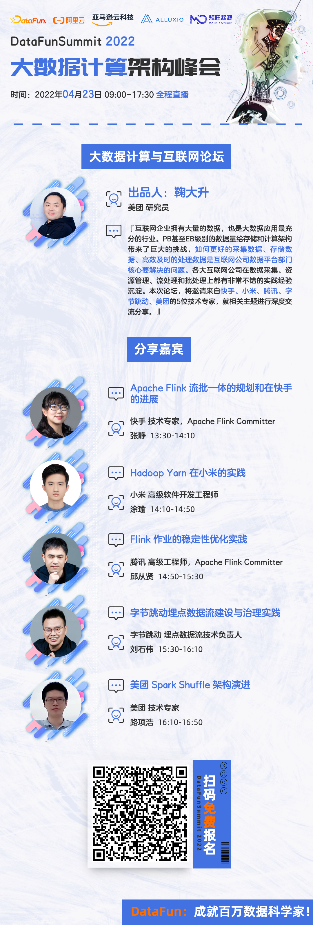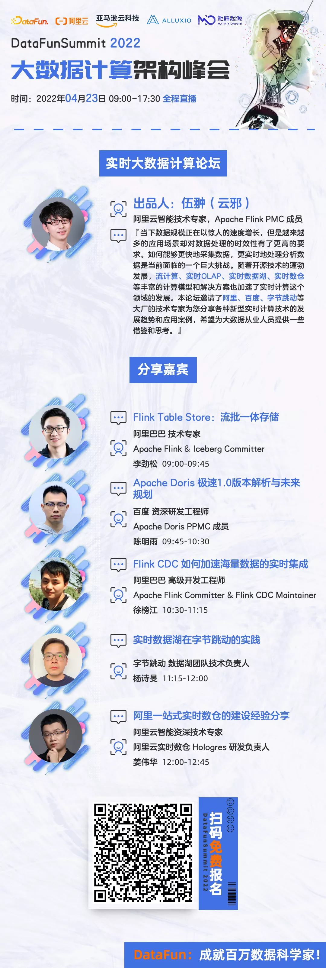 DataFunSummit2022 大数据计算架构峰会将于4月23日(明天)进行线上直播,字节跳动数据湖专家与开发套件数据流专家受邀出席,分别为大家带来《实时数据湖在字节跳动的实践》、《字节跳动埋点数据流建设与治理实践》主题演讲。