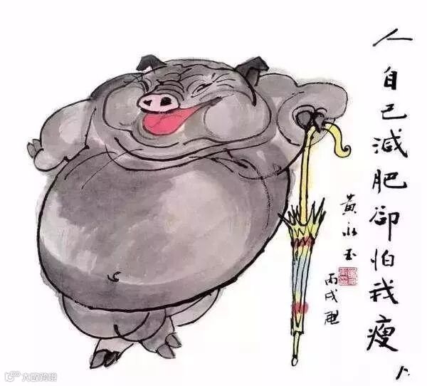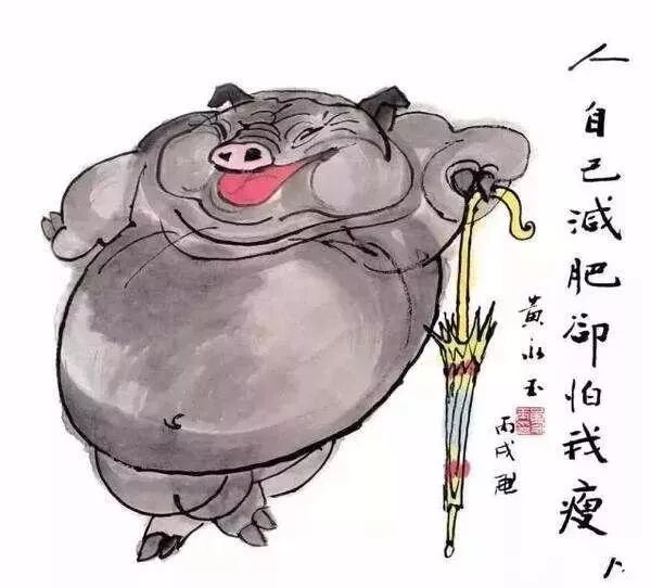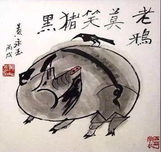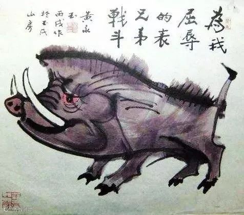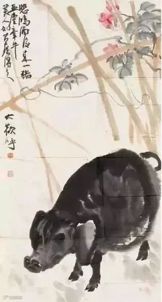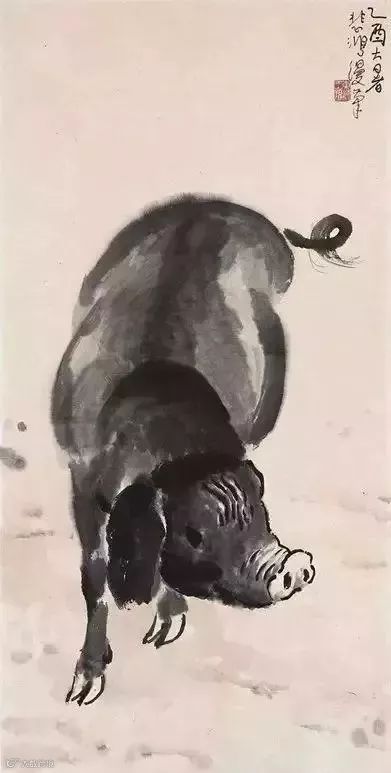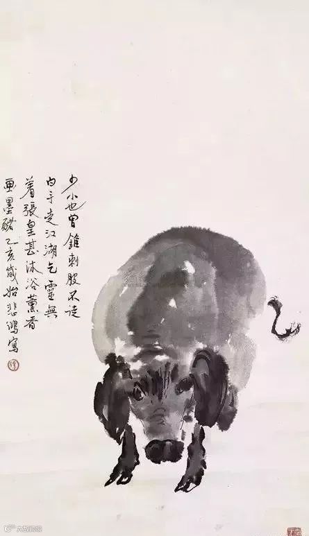 题跋:悲鸿先生曾画一水墨猪,气韵极好,可见猪肉好吃亦好画。