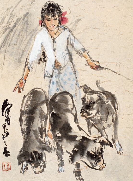 傣族少女赶猪 1994