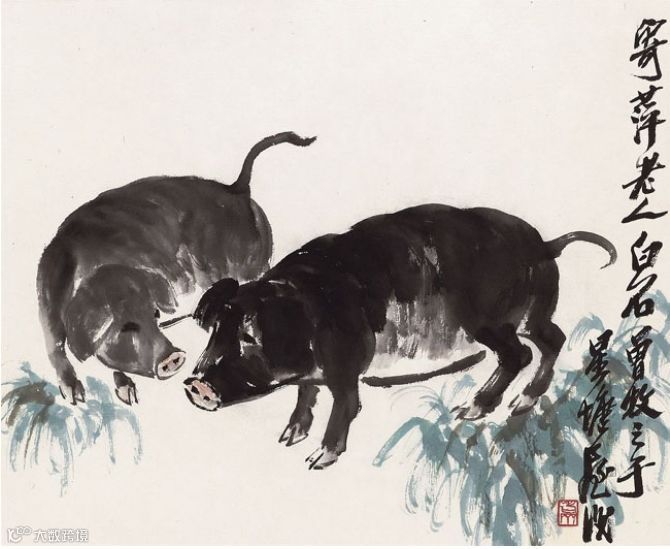 以画马而享誉画坛的徐悲鸿,其画猪亦十分有名,他笔下的猪别有风味!资料显示:早在1998年,徐悲鸿的《双猪图》就出现在香港佳士得的拍卖会上,成交价近37万元。在2003年的中国嘉德拍卖会上,徐悲鸿的《桑梓野猪图》又拍出了104.5万元。
