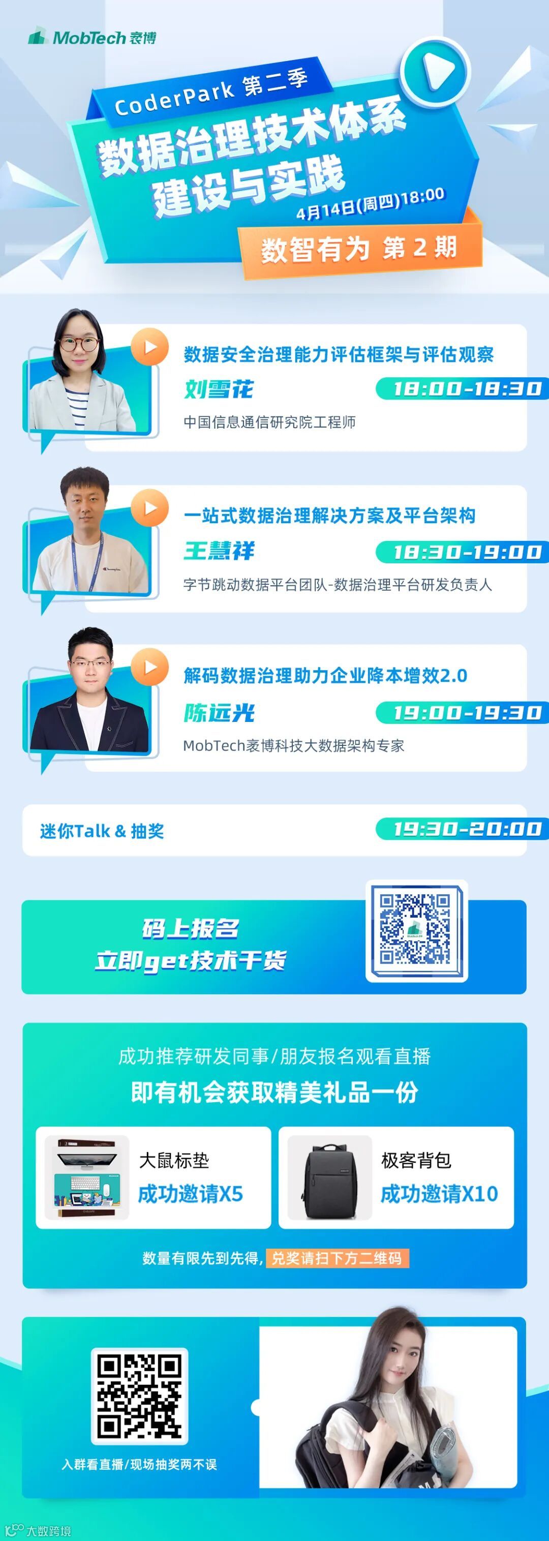 本次线上直播我们和中国信通院、MobTech袤博科技的一线行业专家,聚焦数据治理技术体系建设与实践话题,既包括数据安全治理能力的评估框架与观察、又有来自数据治理应用实践分享,精彩不容错过!