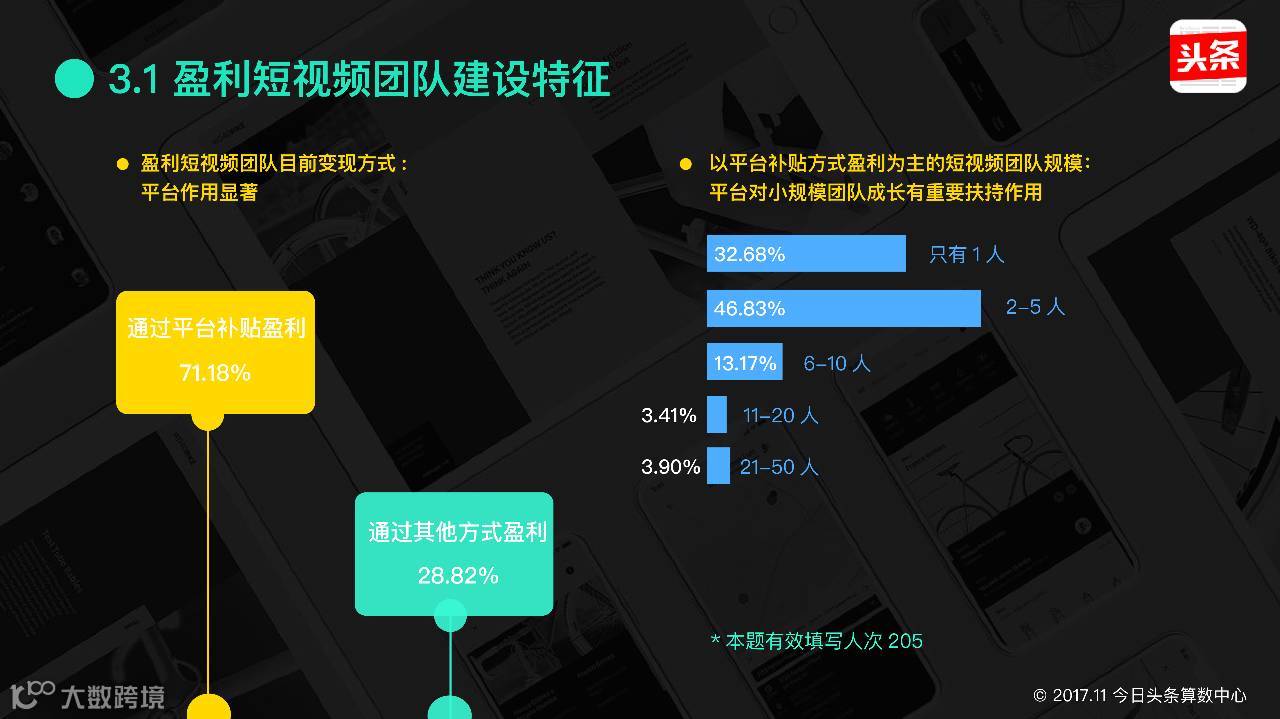 从图中可以看到,平台补贴对小团队的成长有多重要,在盈利团队中有71.18%是通过平台实现盈利的。