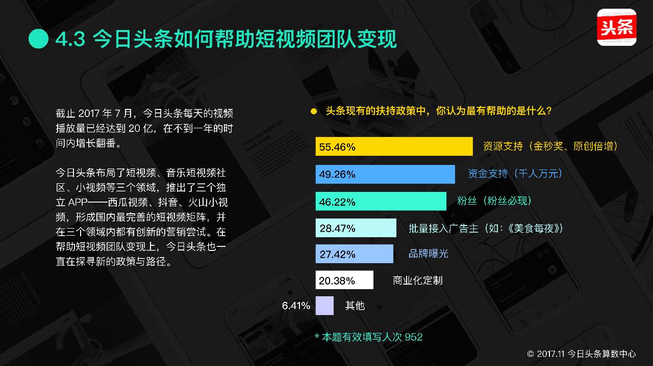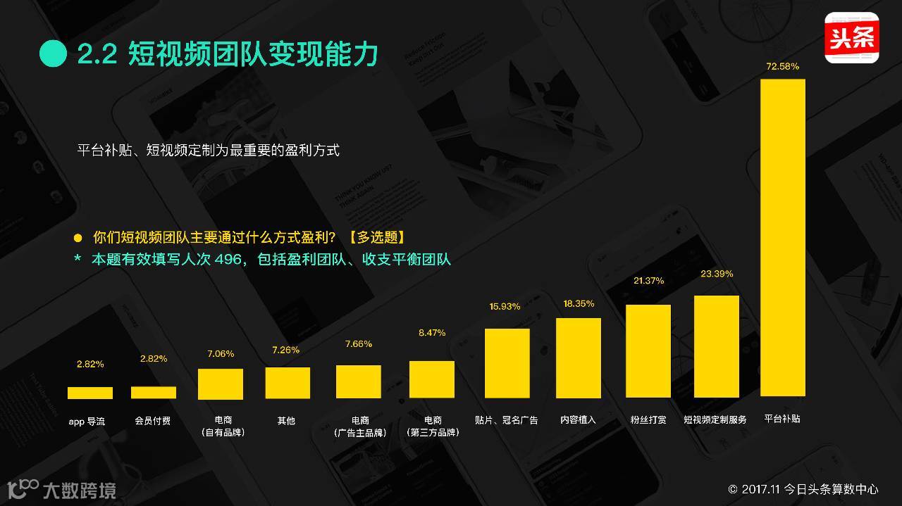 为了让你在诱人的红利和变现的迷雾中,闯出一片天地,今日头条算数中心推出致富红宝书——《短视频创作者商业变现报告》,帮你找寻一条适合自己的致富之路。