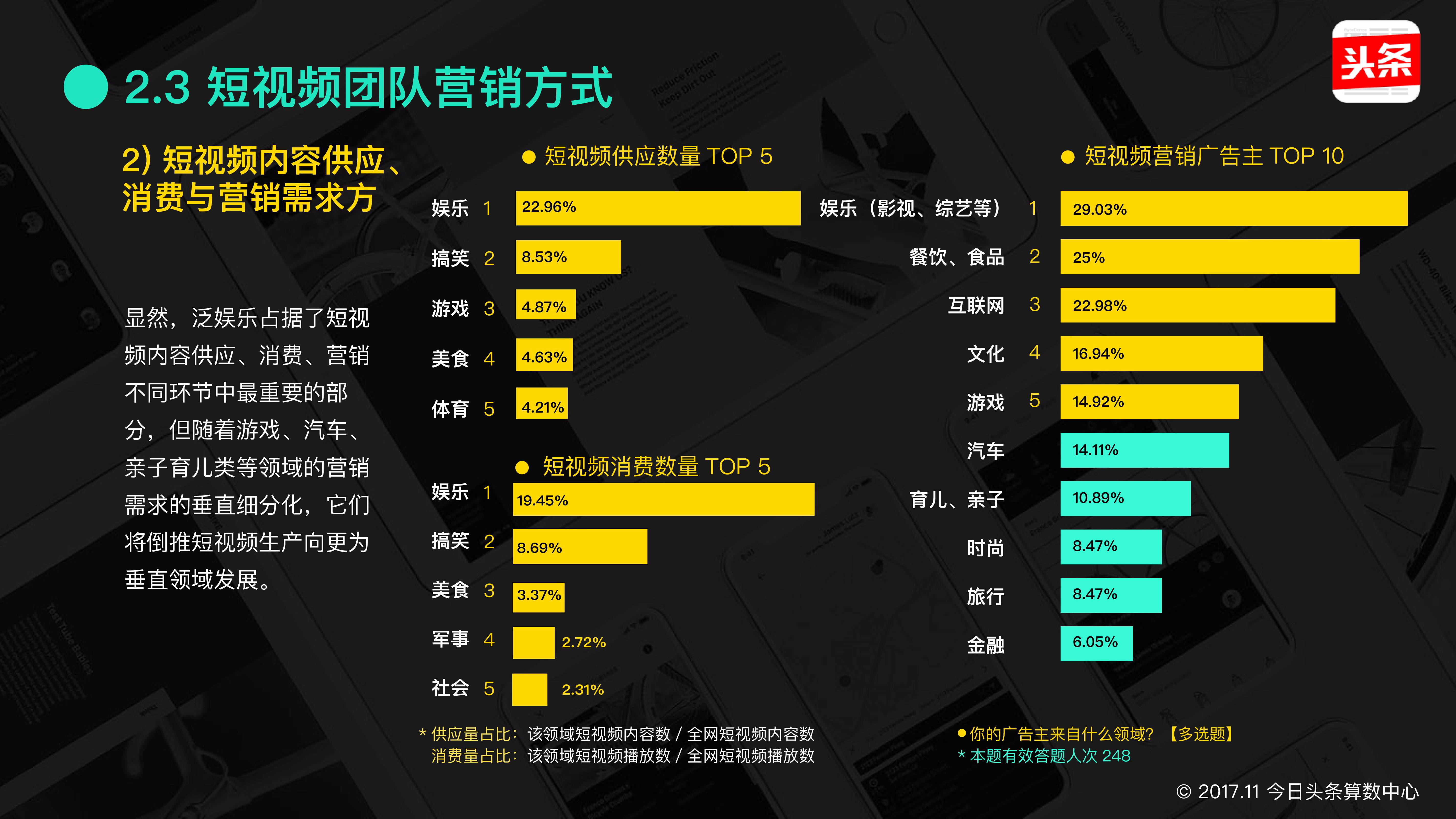 广告主找上门最多的领域,基本和现在短视频红人所在领域一致:娱乐、餐饮、互联网领域。