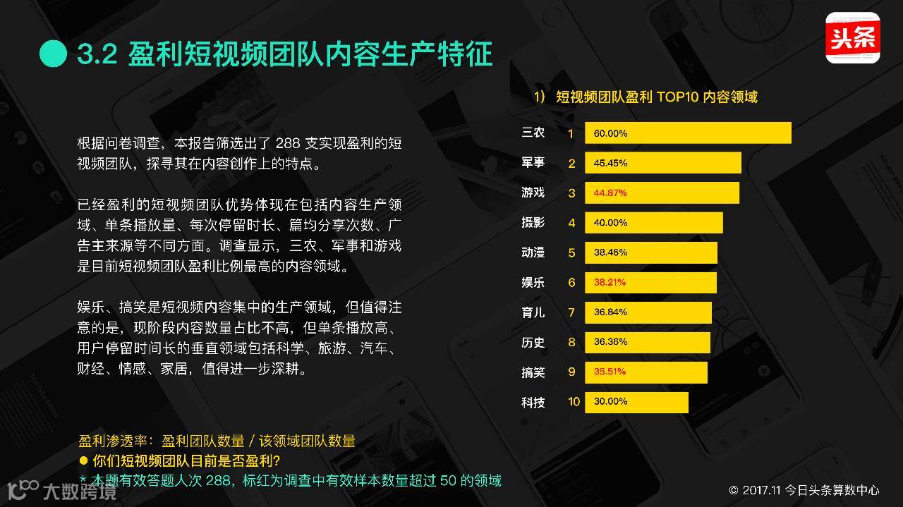 我们则赤裸裸地用数据告诉你,哪些领域的盈利团队比较多:三农、军事、游戏。