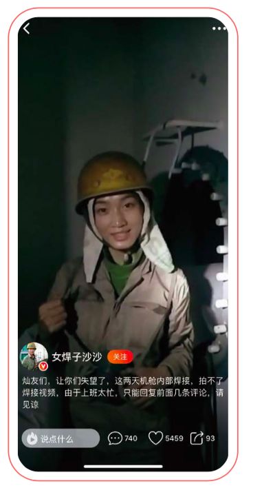 火山小视频中阳光积极的电焊女工 @女焊子沙沙