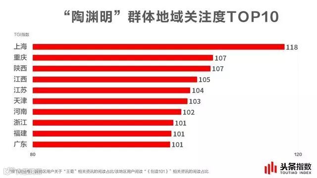 细心的网友会发现,王菊在节目中接电话时讲了一口流利的上海话,没错,王菊是一个来自上海的妹纸。在来《创造101》之前她在esee上海英模旗下做模特经纪。从地域关注指数看,上海“陶渊明”老乡果然最关心菊姐,关注度第二的是来自重庆的“陶渊明”。