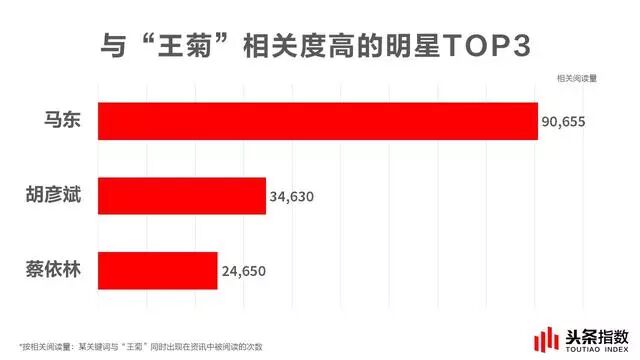 王菊对于《创造101》来说,犹如蔡徐坤之于《偶像练习生》、李宇春之于《超级女生》。不管后续菊姐是否能成功C位出道,在《创造101》这个舞台上,菊姐完美地诠释了节目“逆风前行”的内涵。菊姐不仅凭借实力大受“陶渊明”的喜爱,还受到了明星的点赞!头条指数显示,与王菊相关度高的明星分别是,马东、胡彦斌、蔡依林。