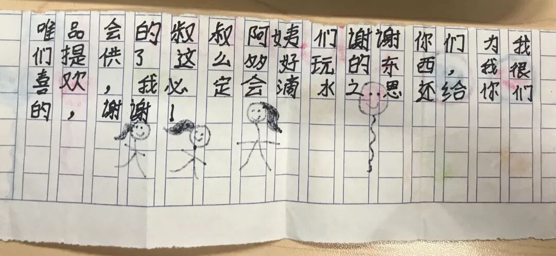 即便双方相处的时间不长,但大家却建立了深厚的友谊,相隔万水千山却也彼此牵挂。临行前客服中心的志愿者陈小雪收到了一份孩子们送给唯品会哥哥姐姐们的神秘礼物——一张手写的贺卡。