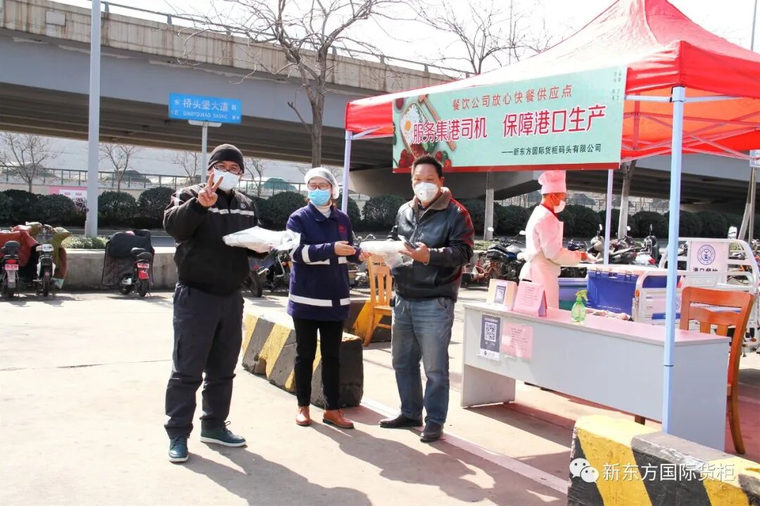 面对这样的具体问题,公司一方面在连云港港口控股集团统一组织和领导下,继续深化调研,由港口控股集团统一向连云港市相关防疫管控部门提交关于解决集卡司机复工的建议。另一方面,为帮助集卡车司机尽快解决复工问题,公司召开了专题会议,由公司综管部牵头,联合港口控股集团餐饮公司,于2月27日设立“服务集港司机,保障港口生产”的快餐供应点,以平价为集卡车司机提供中、晚餐盒饭服务,为他们送上“暖心”的饭菜,解决就餐难的实际困难。