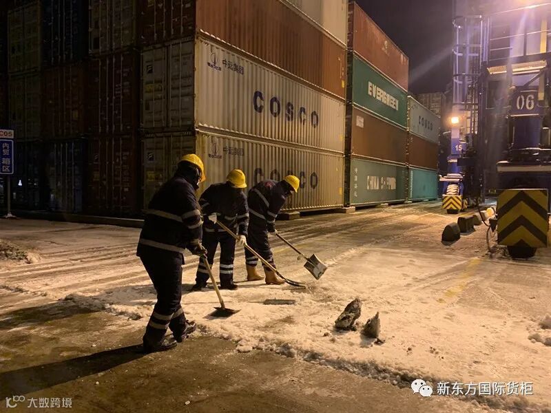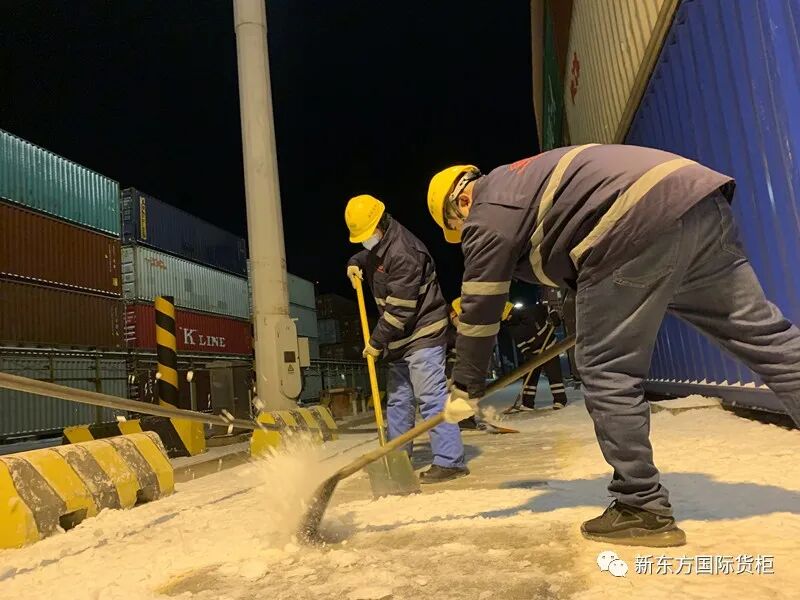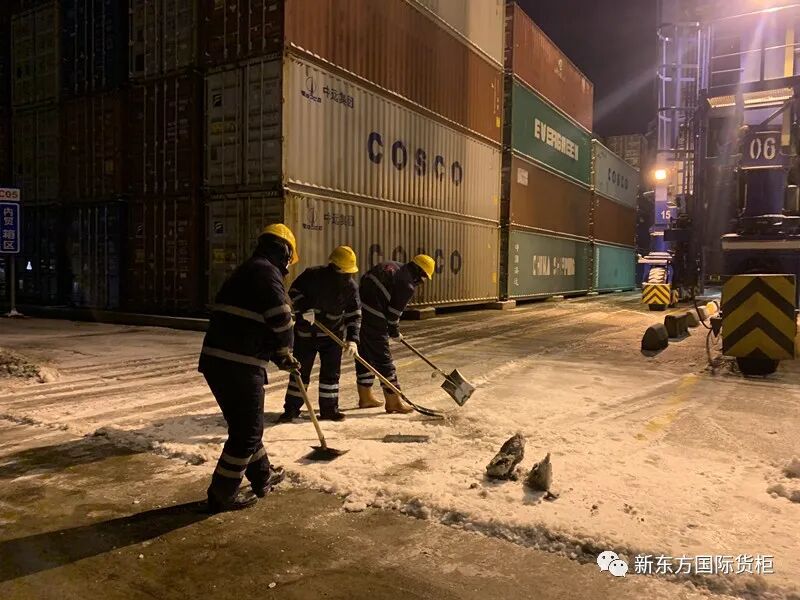 为尽快消除积雪带来的不便,运行中心全员出动,立刻组织开展清雪除冰活动。主干道采取机械为主、人工辅助的清雪作业方式,进行撒盐处理;职工不畏严寒、手拿铁锹、扫帚等清扫工具,认真清除作业现场的积雪,大家齐心协力,配合默契,铲的铲、推的推、扫的扫,干的热火朝天。洁白的雪花映照着一张张因劳动而红彤彤的脸庞,扫雪队伍成了冬日码头一道靓丽的风景线。