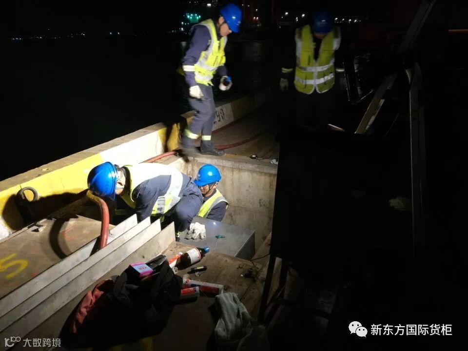 进出场期间,岸桥维修班人员从5点就开始正常工作了,整个码头前沿随处可见岸桥维修班人员奔忙的身影。为了保证工作高质量完成,班组合理安排班次,利用轮休的方式保证人员夜间工作经历充沛,往往一干就是36个小时!