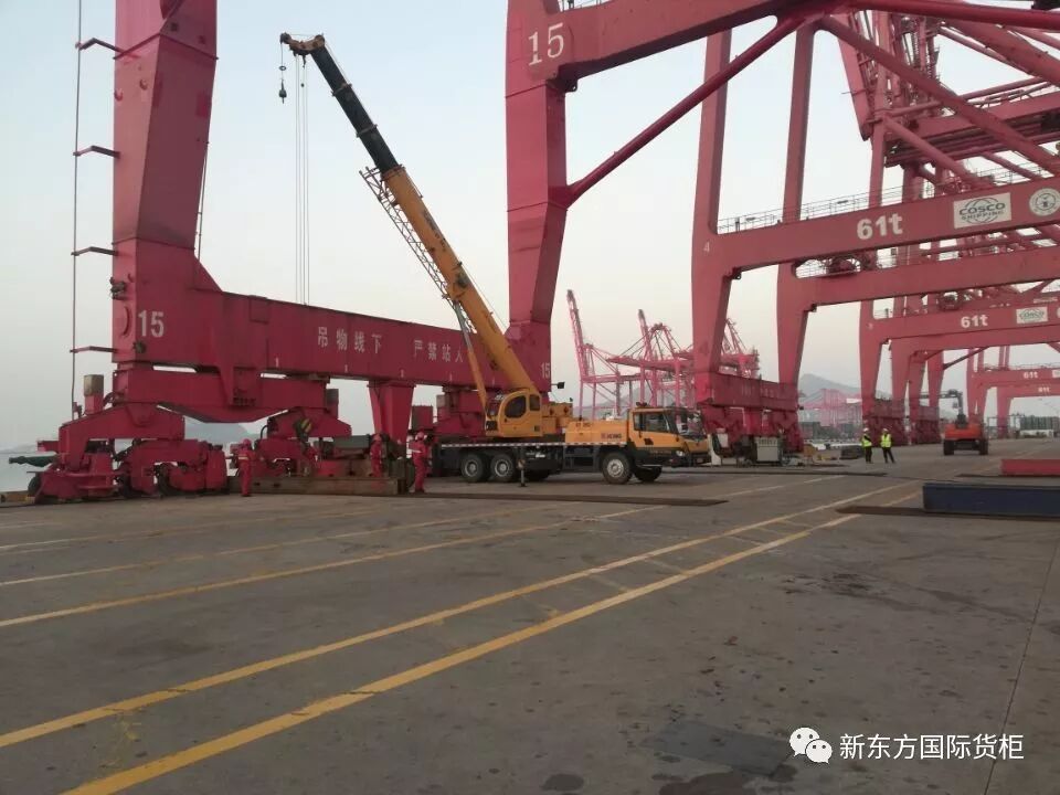 为满足集装箱运输船舶的日益大型化的装卸要求和海洋联盟船只的装卸保障。计划对公司4台岸边装卸桥进行加高。自4月28日的10#装卸桥第一台进场至10月28日15#桥第四台装卸桥回场,岸桥维修班员工舍小家、顾大家,放弃休息时间,主动加班加点地进行岸桥加高,历时6个月,圆满完成了岸桥加高任务。