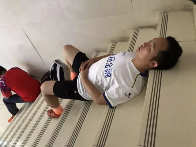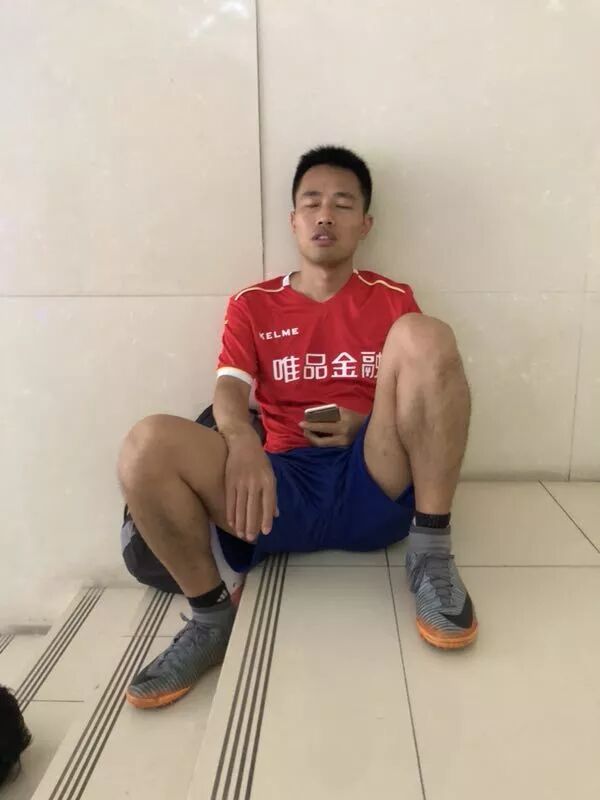 午休期间,队员们不顾形象,创造一切条件为下午的比赛保存体力。然后,被队友偷拍了……(果然是亲队友~!)