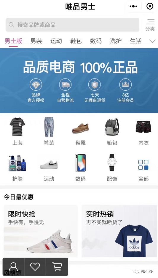 近日,唯品会男士版页面已经悄然上线,微信小程序“唯品男士”也同步开通,男士版不再延续唯品会特有的粉色主色调,而全面改用为更能代表男性的蓝色。