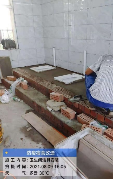 夙兴夜寐,保质保量。为确保工程质量,负责人时刻在施工现场监督,“5+2”、“白+黑”,不仅放弃休假白天全时段跟进,更在夜幕中挑灯奋战,与施工人员一起加班加点夜以继日的赶工。推进施工进度的同时还在过程中严格把控项目细节。凭借专业知识及实际经验,该项目负责人敏锐发现,原有供水管道的流量与压力不能满足多台热水器供水,立即增配一套给水增压系统,保障专班人员的洗浴需求 。