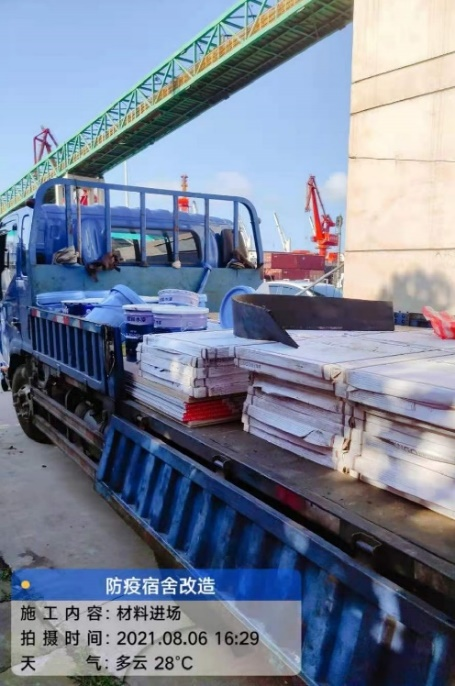 专人负责,全程管控。为保障隔离点改造项目进度,公司技管部安排专人对改造项目进行全过程管控。因近期防疫要求提高,港区加强了管控,施工人员、车辆、材料进港需严格审批,技管部项目负责人面对时间紧、任务重全力协调各方保障施工正常进行。