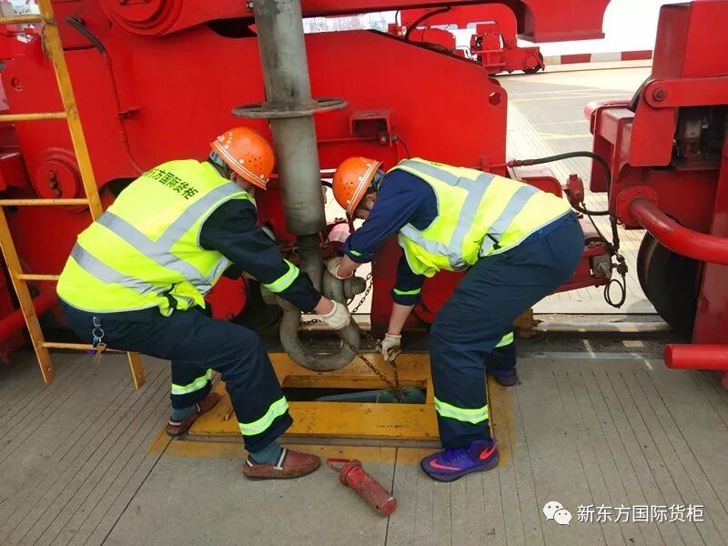 近日,新东方货柜公司岸桥一班以安全月为契机,开展一次岸桥夏季防台演练。