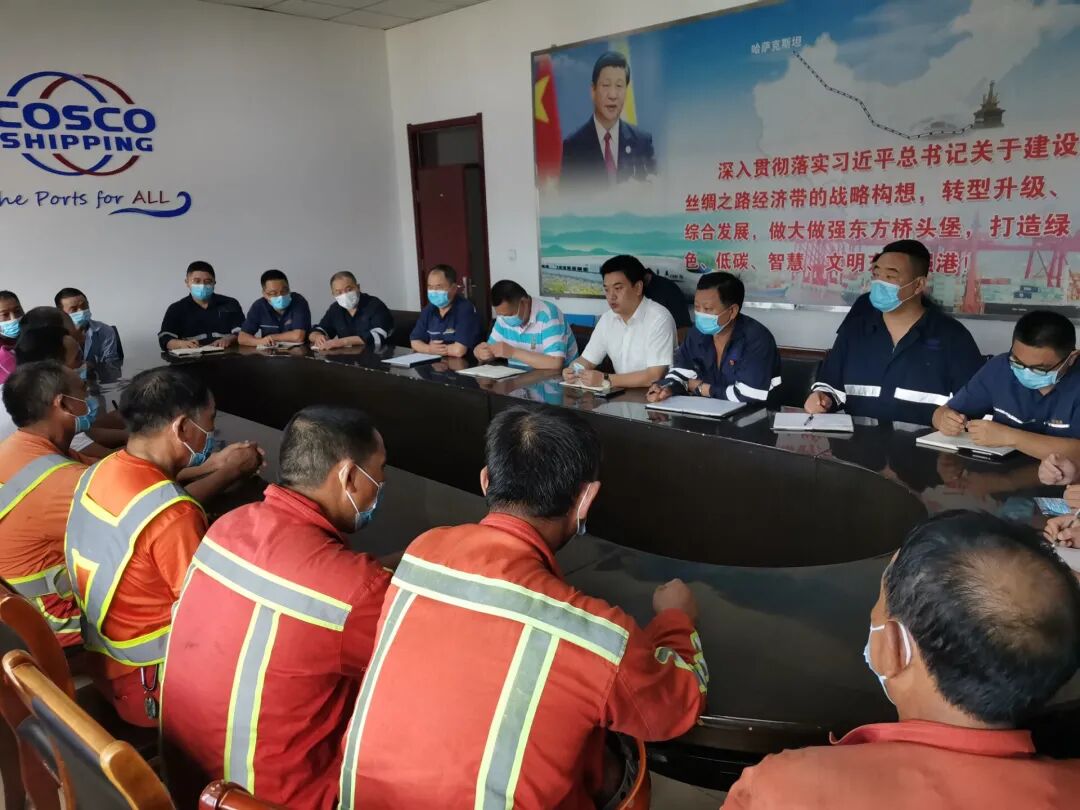 随着国际疫情形势日益严峻,自8月4日夜班起,公司开始实行国内航行船舶与和国际航行船舶分开作业,国际航行船舶启动疫情防控“专班管理”模式。当天下午,公司副总经理王斌主持召开了“专班管理”动员会,公司总经理王岩参加了本次会议。