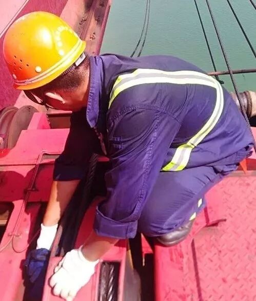 再让我们聚焦到那26米、47米高的龙门吊、装卸桥检修处,只见检修人员正在全神贯注地忙着检修、保养工作,满脸的汗水竟腾不出手来擦拭一下,豆大的汗珠正顺着鼻尖、脸颊一滴、一滴地做着自由落体动作,衣服像从水中捞出一样紧紧地贴在身上。为了公司生产不受影响,抢修人员对此早已习以为常。每当工作结束后,他们回到候工室的第一件事情,就是大口大口地喝水,以此补充流失的水分。