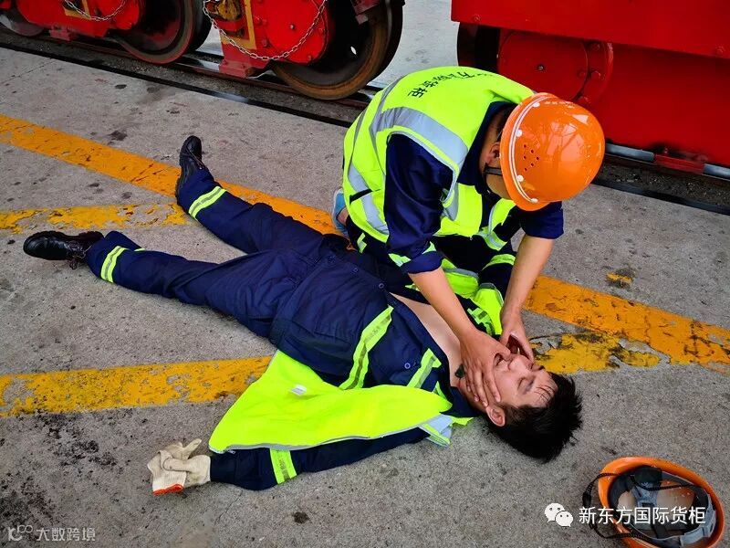 为了加强职工对即将到来的高温天气作业带来的“中暑”危害的预防能力,提高职工对“中暑”症状的辨识和处置能力,岸桥三班每年都会组织此项演练活动。
