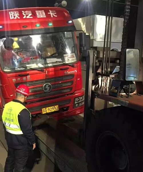 晚上22:50,一辆外跑集卡车在入闸上磅提箱时不小心把车从地磅上开掉下去了!当时,司机急的满头大汗,不知所措。闸口司磅员倪巧珍发现这一情况后,果断通报中控室值班经理和安全班当班人员。