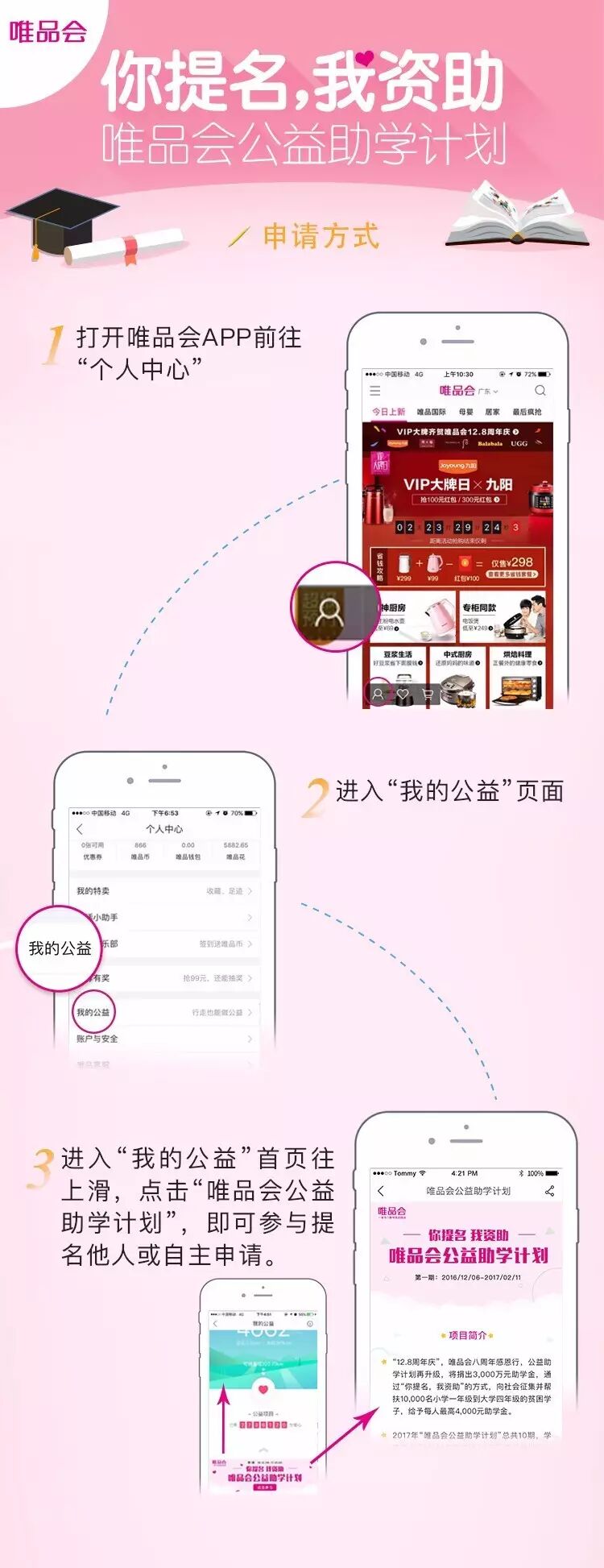 唯品会将通过九寨沟县团委收集受灾学生信息,进行审核和资助。此外,如果你身边有受此次地震影响而面临上学问题的贫困学子,你也可以通过唯品会APP-个人中心“我的公益”版块的公益助学提名系统,为有需要的学子提名,我们一起帮助他继续求学梦想。