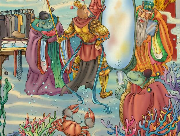 偶得【男装宝典】的龍王,在龍宫备齐了各男装大牌,大圣因此慕名而来。面对泼猴,把他伺候满意了才是王道,有人伺候穿有人伺候吃。龍王也各种赔笑脸,捧着能美颜的前置,只为大圣试穿满意。