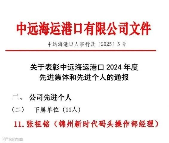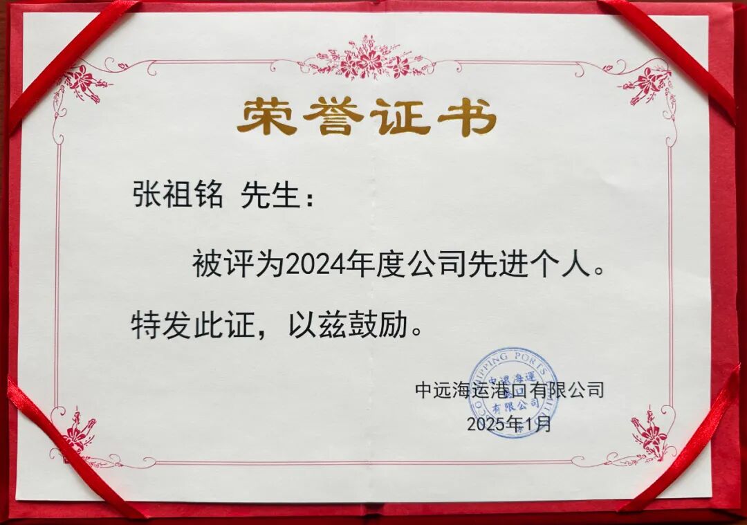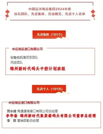 中远海运集团及中远海运港口评选表彰了2024年度先进集体及个人