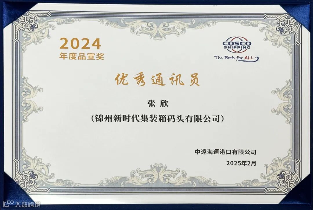 获“中远海运港口公司品宣奖优秀通讯员”称号