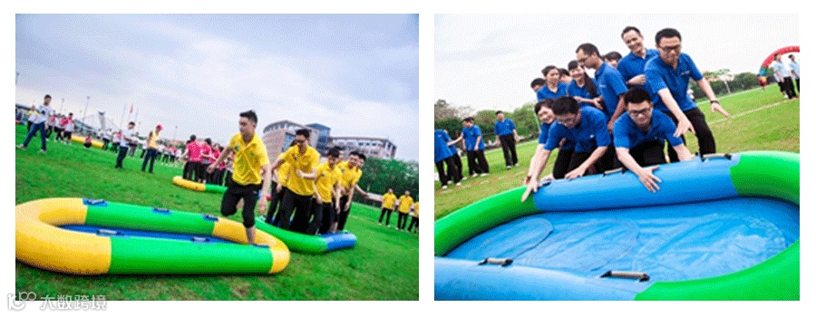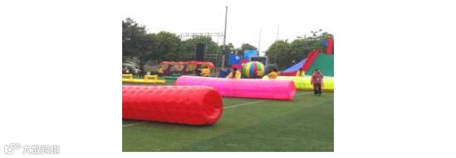 【比赛方法】 每队8名队员参赛,分成两个小组,全部位于起点准备,首先第一组4名队员推充气长筒前进,并绕过障碍物返回起点交接给第二小组队员接力比赛,比赛采取计时排名制,时间越短的队伍名次越靠前。