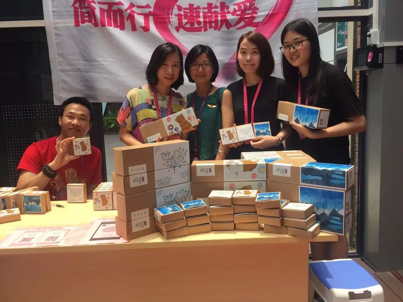 活动中,来自公司各部门的同事都积极参与了此次活动,爱心同事们除了心情美美的收到了我们星星小朋友的绘画作品茶盒之外,还捐出了自己的一份爱心。