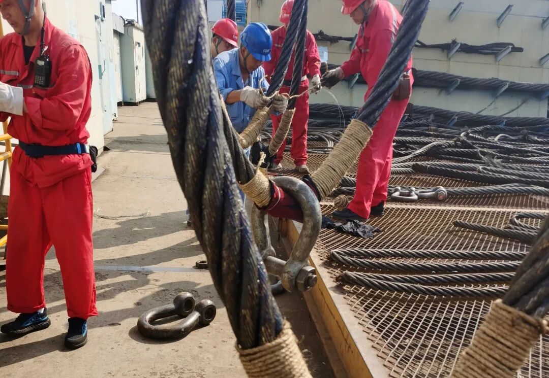 17.5万立方米LNG运输船3号船艏半段总组、合拢吊装阶段,船体车间党支部在分段、总段吊运过程中发现钢丝绳出现渗油现象,影响后期清舱成本与效率。为此,党支部组织起重二班党小组召开攻坚会,提出对钢丝绳端部用麻绳缠绕保护、在吊耳周围用三防布进行保护的措施,有效抑制油污的二次污染现象,降低清舱成本。