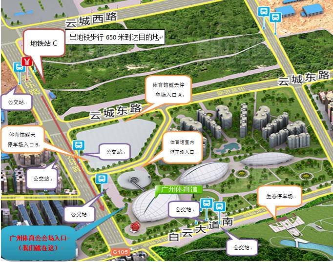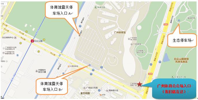温馨提示:广州体育馆拥有多个功能各异的停车场,可停泊车辆1700多辆。如车位已满,可建议停放距离会场350米对面马路的生态公园停车场暂停。