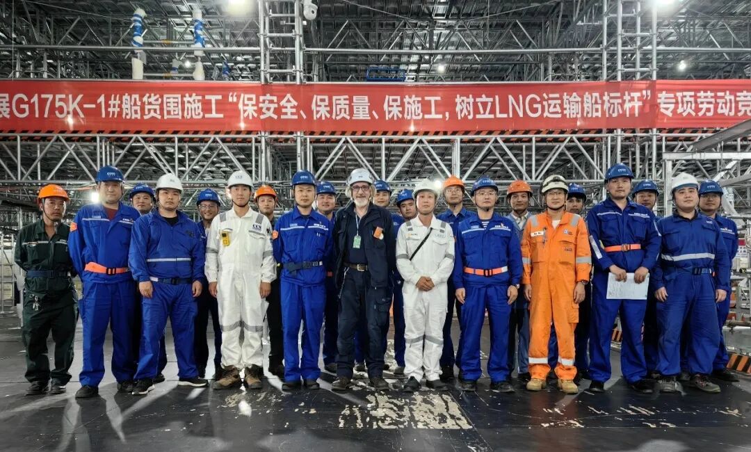 党员干部充分发挥先锋模范作用,为项目开展赋能增力。实现了17.5万立方米LNG运输船首制船按期出坞、货物围护系统按期开工建造、双轴系照光同轴度交验及5号船按期铺底等一系列重要节点,LNG运输船系列船节点实现率100%。依托货物围护系统建造的重点、难点环节,创建7个共产党员工程和1个党员示范岗,为货物围护系统建造提供助力。其中首制船所有货舱声音试验均一次性“零漏点”通过,3货舱氨气试验高标准完成,创造了业内佳绩,得到了船东、船检、GTT及各方的高度认可和肯定。