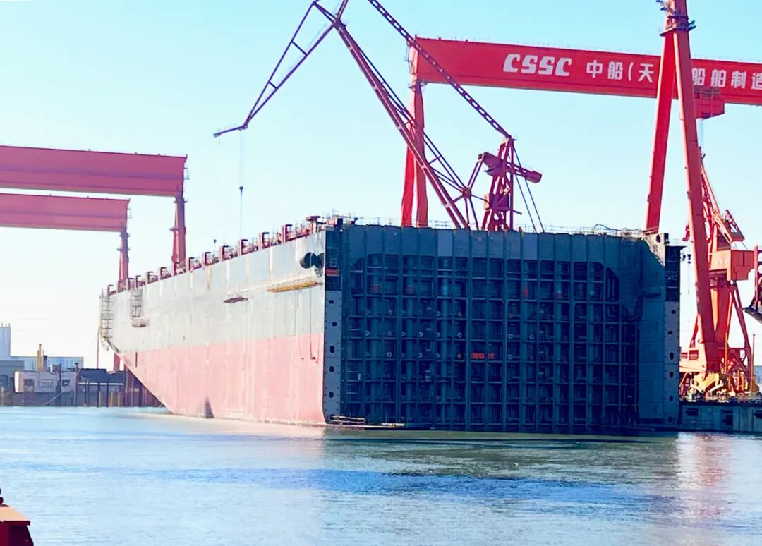 12月16日,LNG双燃料16000TEU集装箱船14号船完成半船漂浮节点。本次漂浮的半船较原计划增加了70余个分段,长度增加60余米。