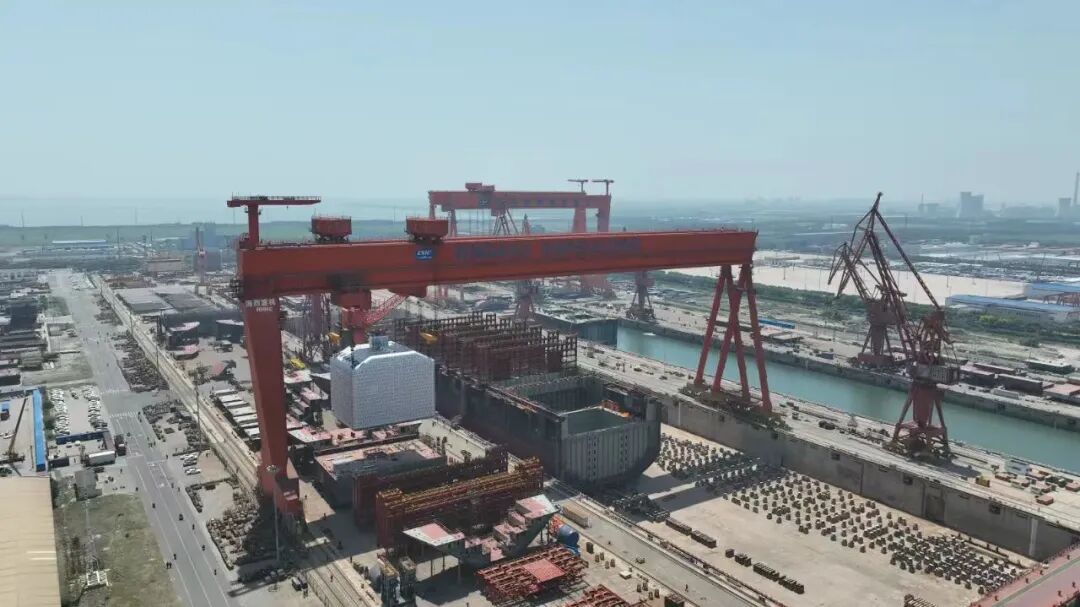 17.5万立方米LNG运输船2号船是该系列船舶的第二艘,将继续在2-3船坞内进行吊装合拢。在充分总结首制船建造经验的基础上,进一步统筹场地资源、优化生产组织,制定更为周密的坞内中日程计划,进一步明确生产任务,确保坞内建造阶段平稳高效,按期实现出坞节点。