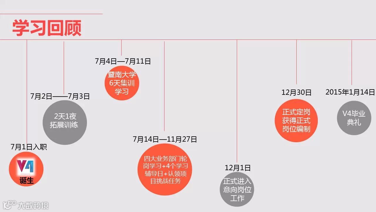 “唯品V4,chase for more!”响亮的口号还飘荡在耳边,一转眼,唯品会2014届的管理培训生项目已告一段落。V4班小伙伴用了将近半年的时光,将自己从初入职场的稚嫩青年打磨成了合格的职业人。接下来我们就跟着小编一起看看,我们唯品V4的成长历程吧!