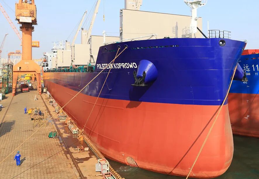 6.5万吨散货船3号船下水前完成坞内发电机动车、坞内动力上锚链、机舱封舱涂装结束等工程。生活区首次实现下水时非合拢层家具安装结束。