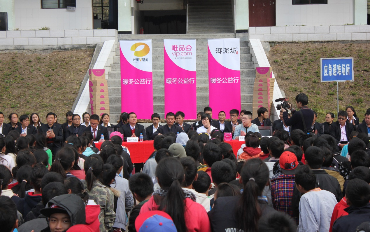 此次“暖冬行动”是早前唯品会联合御泥坊启动的“暖冬行”线上活动的进一步落实。今年10月,唯品会和御泥坊进行多项跨界合作,不仅包括“唯品会-御泥坊”号彩绘飞机,还推出了限量版面膜,唯品会会员在相关活动专区下单,御泥坊就向广东省唯品会慈善基金会捐赠一元钱。短短的3天活动,总共吸引到数万名会员的参与,御泥坊品牌方最终向唯品会基金会捐赠了善款近7万元,而这些善款也用于为偏远地区儿童购买暖冬物资。在后续落实物资发放区域的问题上,唯品会了解到湖南卫视《变形记》栏目拍摄地点云南怒江石月亮中学学生的困难情况,由于地处偏远地区,交通不便,石月亮中学800多名学生在寒冷的冬季急缺防寒物资。在与湖南卫视沟通后,双方一同策划了此次活动,并为孩子送上防寒衣物,让他们过上一个温暖的冬天。
