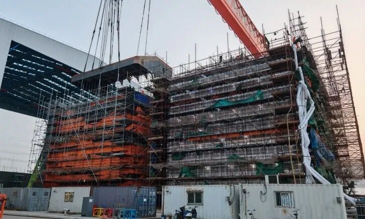 分段制造部集中三地两线优势兵力,冲刺分段节点。FPSO-10项目与17.5万立方米LNG运输船2号船两型船机舱与楼子难点分段需求期集中,重点型号产品分段全面铺开。大组立工序合理调配人力,推进工种复合,提高建造效率,确保进度可控;涂装工序组织人力对两型船机舱分段,提前喷砂作业,均衡涂装物量;脚手架与吊板工序克服困难,争分夺秒搭拆,力保生产节拍连续。